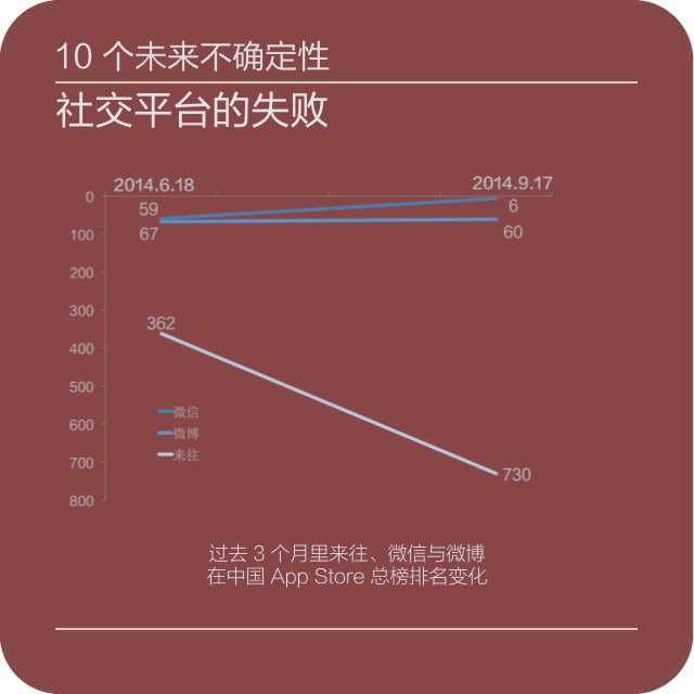 但从应用商店数据来看,来往和微信只是越来越远。而微信的庞大用户基础让它的移动支付业务发展顺利,与支付宝形成了直接竞争。