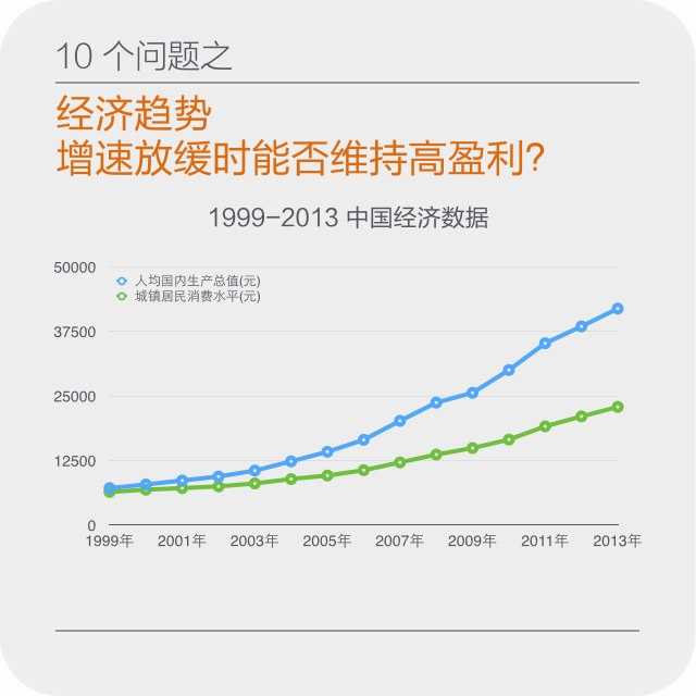 在经济增速放缓的预测下,阿里巴巴赌的却是中国不断膨胀的中产阶级及其越来越重消费轻储蓄的倾向。阿里巴巴向投资者兜售的重点是,中国消费者的购物方式会更加美国化。与西方消费者相比,大部分中国人目前花出去的钱还不太多,GDP只有约1/3是来自消费支出。相比之下,消费支出在美国经济当中占到了约2/3的比例。
