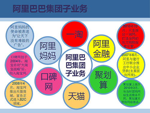上述为阿里集团5个主要核心业务,以下是围绕这些核心业务展开的子业务。
