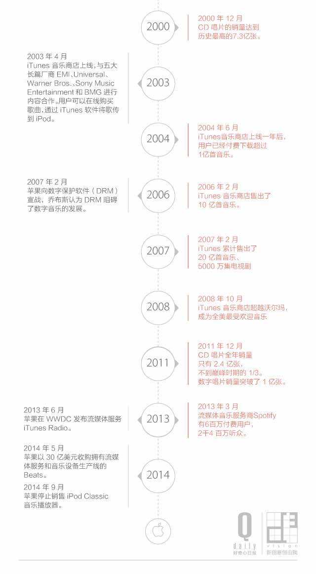 2013 年 6 月,苹果在 WWDC 发布流媒体服务 iTunes Radio 加入战局,并在今年 5 月以 30 亿美元收购了拥有流媒体服务和音乐设备生产线的 Beats。