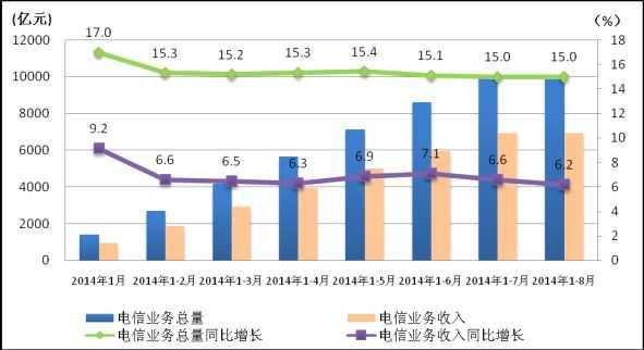 图1.2014年1-8月电信业务总量和电信业务收入发展情况