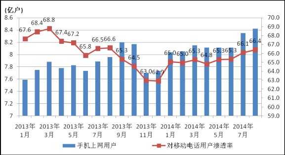 图4 2013-2014年手机上网用户和对移动电话用户渗透率情况