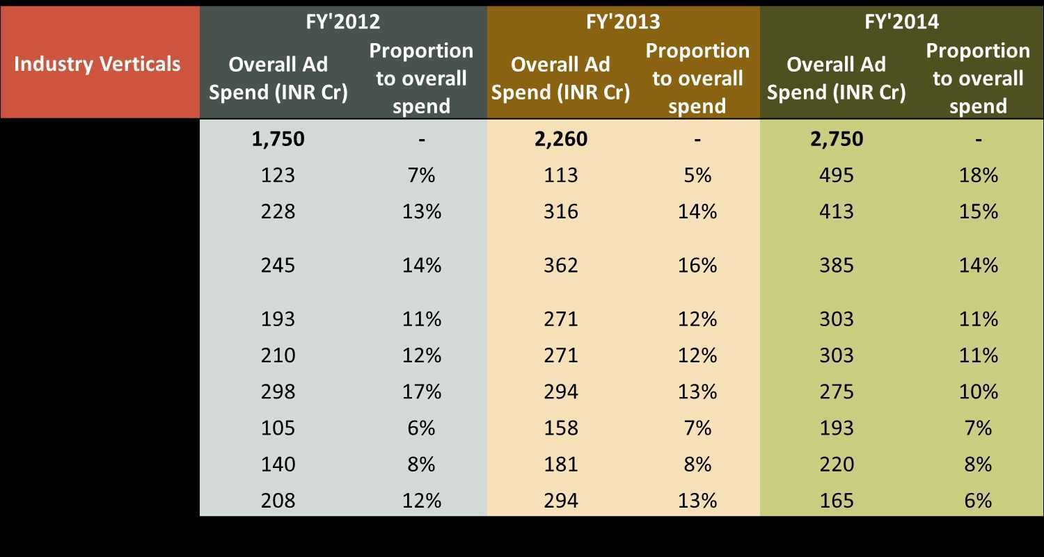 According to the report, Ad spends on Mobile Devices are growing at a CAGR of 43% and Social Media is grew at a CAGR of 41% y-o-y and touched INR 385 Crores and INR 440 Crores in March 2014. Spend on video grew at CAGR of 51% and reached INR 303 Crores. Spends on Email Ads grew at a CAGR 16% to reach INR 88 Crores.