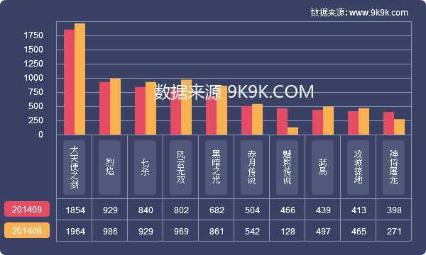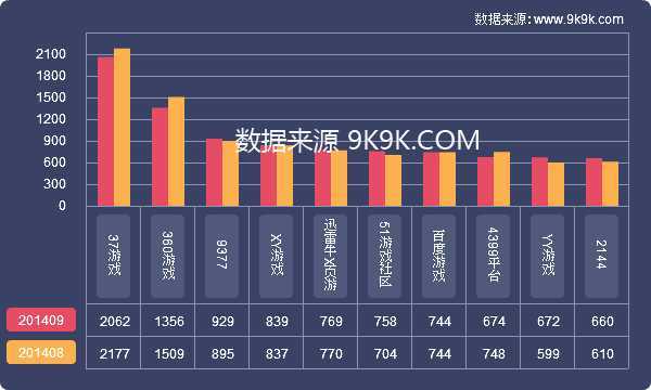 网页游戏最新排行榜新增上榜平台—2144、YY游戏;2144本月开服量较上月相比涨势明显,从其三款主打游戏来看《烈焰》、《七杀》的频率较稳定,而开服量最大的《赤月传说》频率徘徊在3-4组/天,对于主打游戏各平台都会根据游戏的数据来临时决定开服频率,从本月来看《赤月传说》于2144的表现很好;2144本月新入驻两款游戏《风色轨迹》、《炮炮兵团》,目前来看两款新游的主打趋势并不明显。YY游戏本月开服量波动明显,新入驻《百战天下》、《魅影传说》、《卧龙OL》、《斩龙传奇》、《战龙兵团》,其中《百战天下》为YY又一独代产品,此游戏于10月中旬放出联运,据9K9K网页游戏数据统计截至10月入驻的一线平台有5家;主推游戏《大天使之剑》本月频率提升至4服/天,目前于YY游戏表现良好,后期将继续加大推广力度至6服/天;两款独代产品《风云无双》、《笑傲九天》本月开服频率稳定。