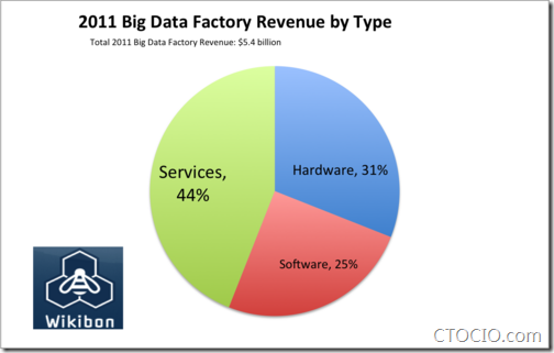 以下是大数据硬件、软件和服务的收入比例: