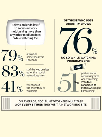 研究显示8.5%的受访者决定看Jersey Shore是因为他们在社交网络上阅读的相关信息。3/10的人因为社交网络上阅读或看到的信息而决定观看某个电视节目。
