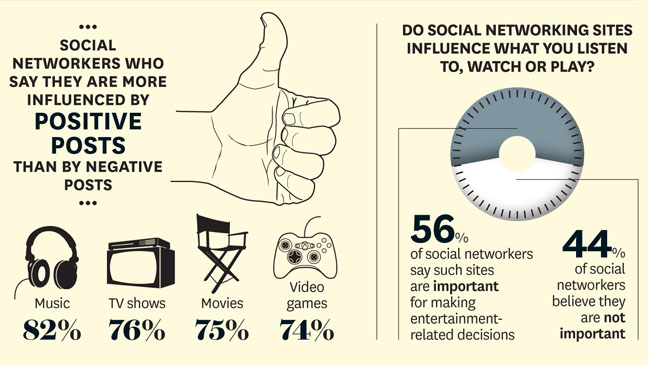 当社会化网络成为人们的观影体验的一部分时,传统的营销方式仍然最为重要,研究发现40%的受访者称电影预告片和影评对他们选择电影影响最大,只有9%的受访者称社交网络的评论对他们的观影影响最大。
