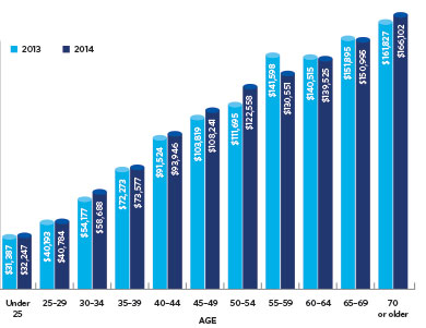 The Scientist的调查结果表明,年龄以及与之相应增长的资历和经验会转化为有形的经济利益。在美国,25岁以上的生命科学家每5年收入上涨近20%。美国35-39岁的生命科学家收入为73,577美元,而40-44岁的收入为93,946美元,二者之间显示出20,369美元的显著收入跳跃。45-49岁年龄组平均工资达到了108,241美元。