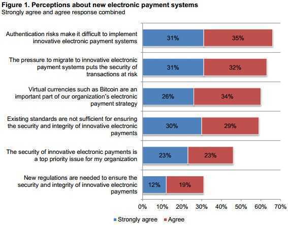 该报告的作者指出,参与者,主要工作在IT运营,安全和技术部署,“都熟悉并参与”,在其组织的电子支付行为。