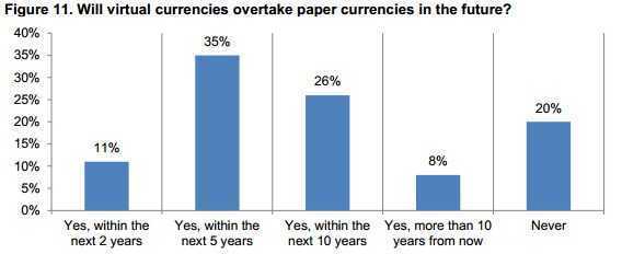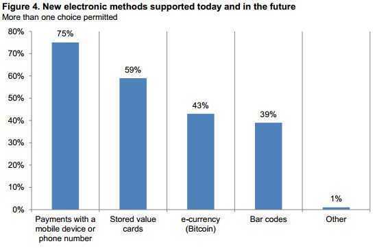 当被问及如何重要无纸化或虚拟货币(如比特币)的认可,是其组织的创新电子支付战略,40%的被调查者说,这是至关重要的,而43%将其形容为“非常重要”。