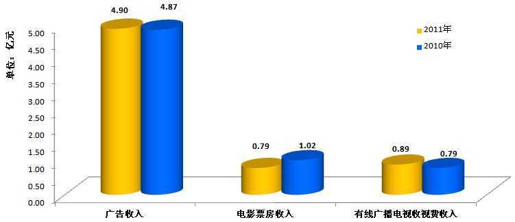 三、2011年1至9月广播影视累计创收收入同期增长18.89%