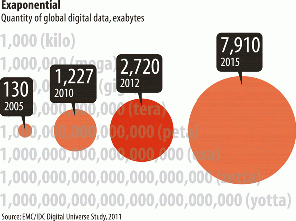 大数据是美丽的,数据在变大,见下图不断膨胀的大图;成本在降低,2020年1Pb的存储成本只有$4;价值在凸显,McKinsey发现针对医疗数据的分析光在美国就能节省$3000亿