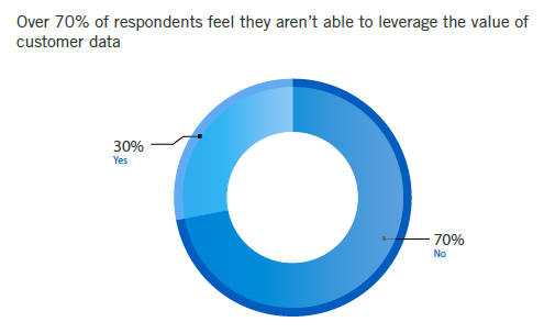 超过70%的受访者感觉他们无法利用用户数据洞察的价值。数据显示出企业在浪费他们投入大量资本采集而来的数据,这个不足不仅减低了他们的投资回报,也让他们在竞争中有落后挨打的风险。企业需要保证人才和技术去充分挖掘数据的价值,增强基于信息的行动。