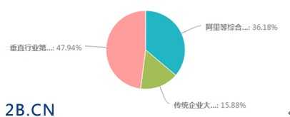 三个选项中,垂直行业第三方平台最被认可,占比达到47.94%,而阿里等综合平台认可度也达到了36.18%。传统企业大鳄转型进入B2B最不被看好,只有15.88%。