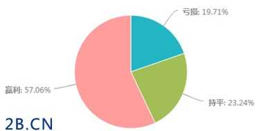 从数据上看,赢利企业占比近六成,达到57.06%,这比2013年的49.68%提高了7.38个百分点,亏损比例占比19.71%,比2013年的23.23%降低了3.52个百分点。持平比例23.24%。