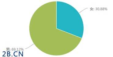 数据表明,男性占总样本量的69.12%,女性占比30.88%,表明B2B企业中男性占绝大多数。