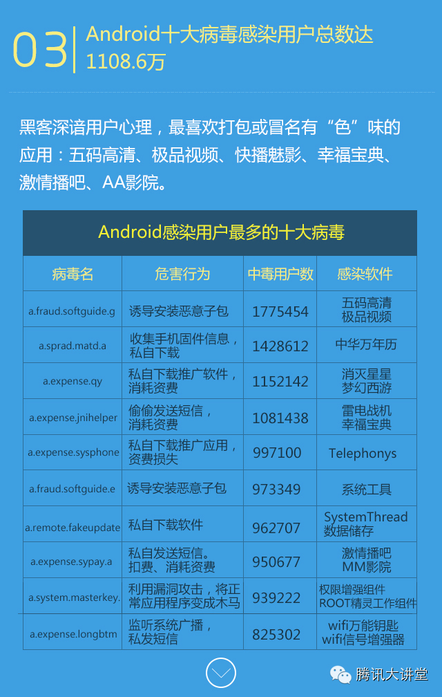 腾讯:2014年Q3中国智能手机安全报告 更多阅读:大数据的前世今生-大数据特征与发展历程工业4.0—从智慧工厂到智能生产ReadWrite:2012年智能手机业三大关键词:专利 支付 安全中国汽车流通协会:2022年4月中国汽车保值率报告VisionMobile:2011年智能手机市场概览TechInsights:预计2023年全球智能手机销量排名前十的国家BI:Android用户喜欢大屏手机ZDC:2011年Q3中国智能手机市场研究报告人人都是昏析师:14张图用逻辑思维戳穿美丽人生PPT:什么是真正的移动互联网思维2025年全球64%网络流量来自智能手机Beyond Identy:调查显示49%的安卓用户正在考虑转入iPhone阵营CMR India:2017上半年超过90%的印度智能手机运行Android系统eMarketer:2016年全球半数手机用户使用的是智能手机IOS与Android:谁更适合中国智能手机市场