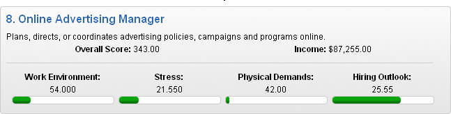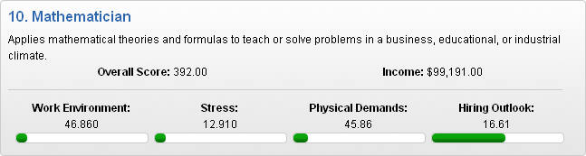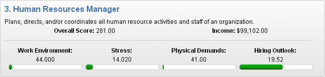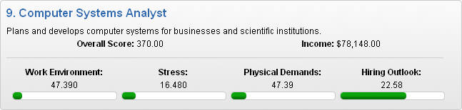 CareerCast:2012美国十大最佳工作 careercast发布了2012年美国十大最佳工作,他们是: 第一名:软件工程师 第二名:精算师 第三名:人力资源管理 第四名:牙科保健师 第五名:理财师 第6名:听力矫正专家 第7名:职能治疗师 第8名:网络广告管理 第9名:计算机系统分析 第10名:数学家 更多阅读:Jobvite:社会化网络能帮你找到工作吗[信息视图]Potentialpark:7%的企业有移动招聘渠道用数据说话,简历这样写就能进谷歌LinkedIn:工程师最想去的10家硅谷创业公司信息图:社会化招聘技术的历史拉勾招聘数据研究院:2021年11月以来互联网大厂的人才需求指数整体下降26%研究发现领英上年长求职者的工作机会少于年轻人LinkedIn:员工数据说苹果信息图:美国互联网行业十大最火职业薪水排名PayScale:2011年美国薪酬情况和未来走势Potentialpark:社会化招聘好处多2015年全球企业并购金额或创新高Raymond James:预计2014年智能手机市场进入平缓阶段 除中国以外Canalys:2021年Q3全球云服务支出达到494亿美元 同比增长35%新加坡中文教研中心:调查显示新华裔儿童使用中文频率下降