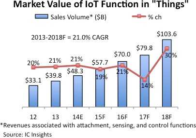 从2013-2018年,由晶圆代工厂制造的IC这一市场将可达到约11%的年复合成长率(CAGR),这一数字几乎比整个IC市场成长更高1倍。