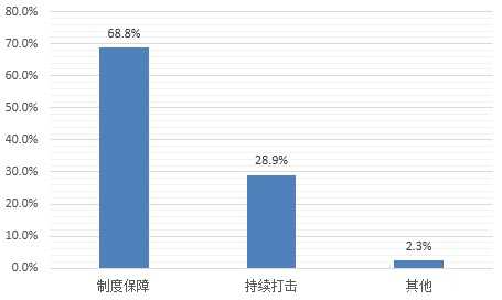有394位网络用户在关注反腐议题时表达了自身对如何遏制腐败的看法,其中68.8%的用户认为制度保障可以有效遏制反腐,该比例明显超过对持续打击贪官的认可(28.9%)。部分微博用户明确表示“腐败随权力而生”,必须要“有效约束”,在法律的框架下合理运用权力,从源头上遏制腐败。