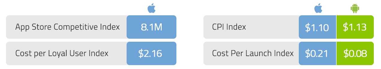 随着新设备和下载量的增多,11月的iOS忠实用户购买成本下降27%至1.58美元,同比也出现了12%的下降,另一个主要原因是用户参与度的提高,比如玩家们在应用内的时间增长了21%,打开应用的次数也增长到了平均每月11.5次,而去年同期为9.4次。