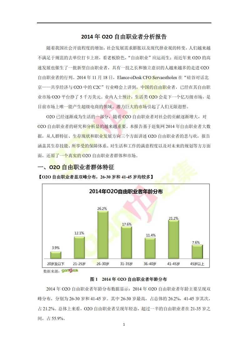 赶集网招聘频道负责人钟磊表示,该报告基于赶集网2014年自由职业者大数据,从人群特征、生存现状和职业发展方向三个方面进行评估和整理,报告涵盖其生存技能、所享受的保障体系、对生活和工作的满意程度以及对未来的规划等方面,可为行业和O2O从业者提供借鉴和参考。