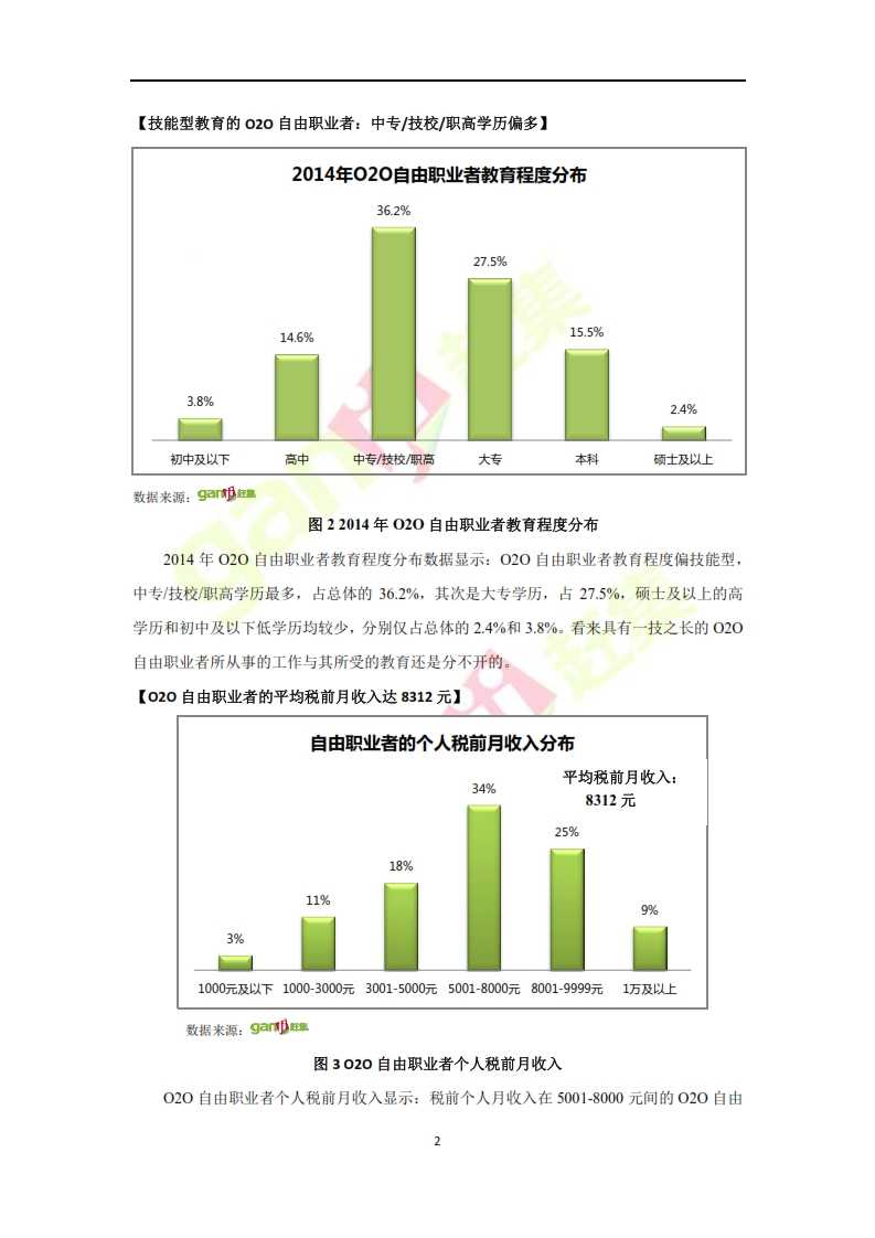 赶集网日前发布《2014年O2O自由职业者分析报告》,报告显示O2O自由职业者的平均税前月收入达8312元。税前个人月收入高于5000元的O2O自由职业者占68%,9%的O2O自由职业者税前月收入超过一万元,低于3000元月收入的O2O自由职业者占14%。