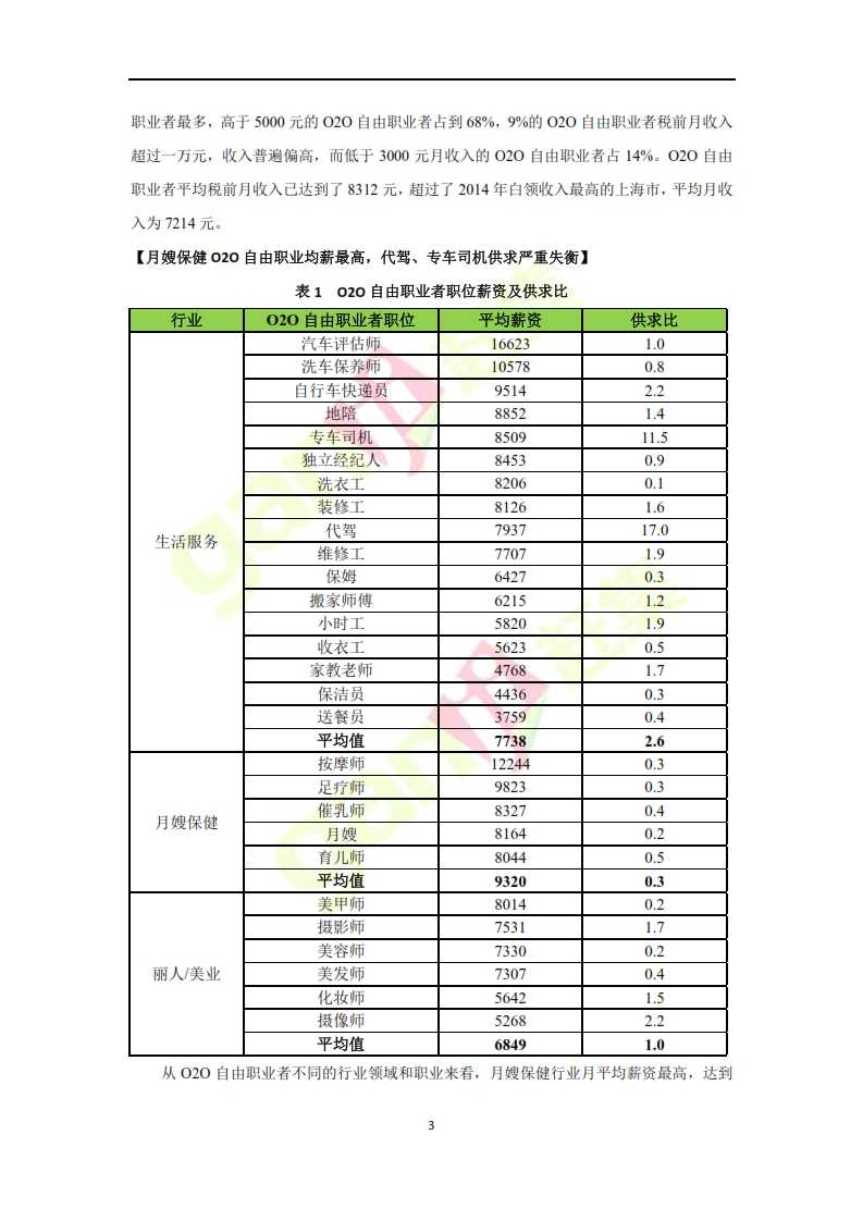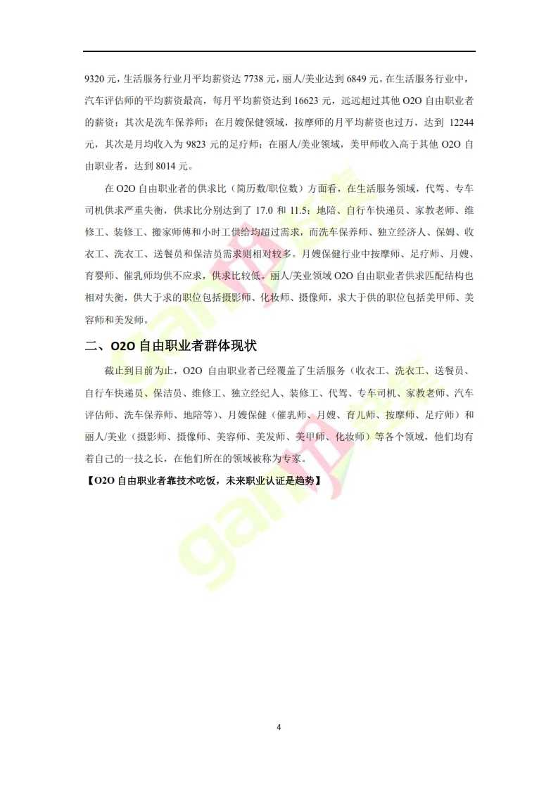 报告显示,O2O自由职业者不同的行业领域和职业中,家政保健行业月平均薪资最高,达9320元,生活服务行业月平均薪资达7738元,丽人/美业达到6849元。汽车评估师、洗车保养师、按摩师的月平均薪资均过万,足疗美甲师的收入也在8000元以上。