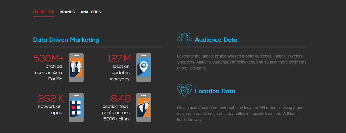 日本风投公司Global Brain刚刚参与了对移动广告技术公司AdNear1900万美元的B轮投资,使得AdNear的脚步从印度、澳大利亚一路杀到了日本。AdNear是一家印度公司,目前总部位于新加坡,这家移动广告技术公司能够不依赖GPS定位系统,基于现实的地理位置数据,通过对客户的消费需求分析推送特定的广告。这种特点使得其看上去有望成为全球广告科技市场的主力。