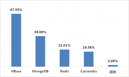 在大数据存储上,HBase则以67.55%的比例位居榜首,远超其他数据仓库,当然这点与Hadoop原生支持是分不开的。