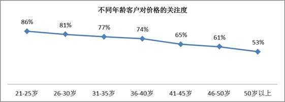客户对价格的关注度随着年龄的增长而逐步降低。