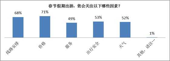 价格、线路安排是客户春节出游时较为关注的因素,其次是出行安全、天气等。