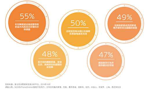 智能家居:网络社会使得我们的生活正以前所未有的程度互联互通,但住房的智能性尚明显落后于连接的普及性。这一形势必将很快发生变化。爱立信的调查显示,消费者希望住房成为自己日常生活的得力助手:厨房是否漏水,冰箱工作是否正常,孩子是否已经回家……爱立信消费者研究室的最新调查显示,消费者对以下的智能家居兴趣浓厚: