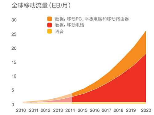 如同石油是工业社会的血液一样,数据流随着其承载的信息越来越丰富,正在日益成为网络社会重要的基础性资源。数据流如同网络社会的血液一样,不断催生新的应用,不断推动创新发展,不断促进行业融合。而随着应用的井喷,又反过来生成了新的流量,不断为网络社会注入新的血液。这种循环发展的结果,是数据流量以几何级数的增长。爱立信预计,2014年至2020年,移动数据流量有望以40%的复合年增长率增长。到2020年,移动数据流量将较2014年增长8倍。