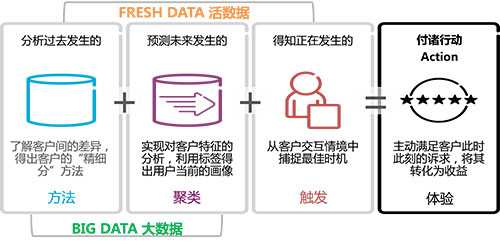 数据的准确性:业务流程中各个环节的数据对于描绘客户的体验并不都是准确的。因此,从海量数据中进行准确的挖掘,并辅以实时的观测和反馈,才能获取真正影响客户体验的因素,进而形成具备洞察力的策略。数据的准确性是活数据的中心,也是价值运营的生命所在