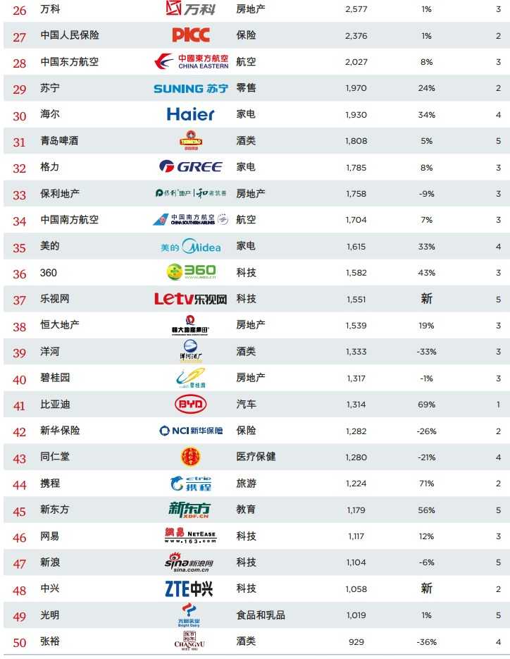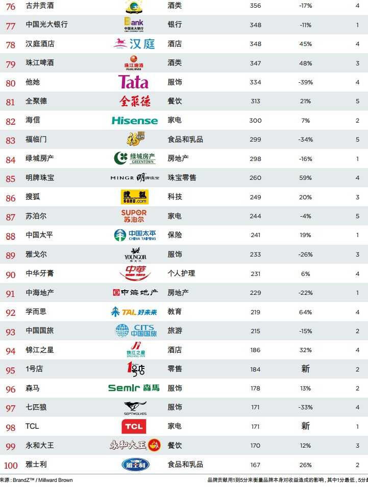 BrandZ:2015年最具价值中国品牌榜Top100 更多阅读:YouGov:女性消费者眼中十大知名品牌Interbrand :2014年全球最佳零售品牌榜Millward Brown:2015年BrandZ最具价值全球品牌100强排行榜European Brand Institute:2016年全球最具品牌价值企业排行榜Top100福布斯:2013年美国40岁以下最具影响力CEO:佩奇居首清科投资:2012年中国最具投资价值企业50强出炉2016中国最具幸福感城市Engagement Labs:2020年最具说服力线上线下营销品牌榜Forbes:2016年度全球最具价值品牌排行榜Millward Brown:2012年“BrandZ最具价值全球化品牌100强Millward Brown:2012年BrandZ全球品牌价值榜(上)Millward Brown:2012年BrandZ全球品牌价值榜(下)BrandZ:2013年最具价值中国品牌50强BrandZ:2012年亚洲最具价值品牌 科技品牌百度排名第一BrandZ:2016年最具价值中国品牌100强(附完整版下载)