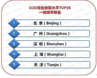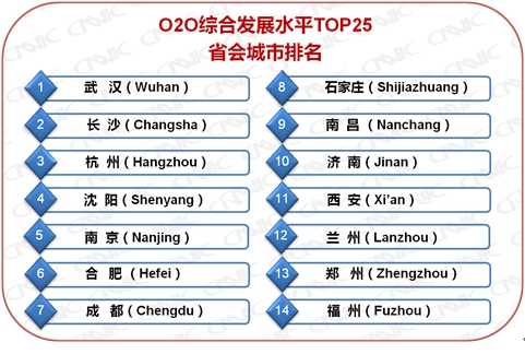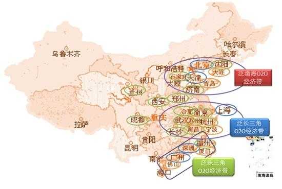 CNNIC研究显示,O2O发展水平与经济发展水平高度相关,纵观O2O综合发展水平最高的25个城市,其地域分布主要沿三大经济圈展开。泛渤海O2O经济带由一线城市北京、天津,省会城市沈阳、石家庄、济南,其他城市大连、青岛组成。其中,沈阳和大连形成辽宁省的O2O经济城市群,青岛、济南形成山东省的O2O经济城市群。泛长三角O2O经济带由一线城市上海,省会城市武汉、南京、长沙、合肥、南昌、杭州,其他城市苏州、宁波组成。其中,苏州、杭州、宁波形成苏杭的O2O经济城市群。泛珠三角O2O经济带由一线城市广州、深圳,省会城市福州,其他城市佛山、厦门组成。其中,广州、深圳、佛山形成广东省的O2O经济城市群,福州、厦门形成福建省的O2O经济城市群。无论是泛O2O经济带,还是O2O经济城市群,充分发挥集群效应联合推动发展O2O经济,将会取得规模效益,实现价值的最大化。