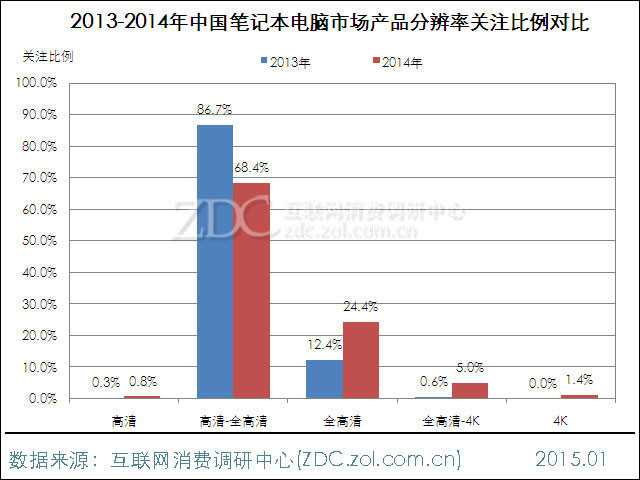 图20 2013-2014年中国笔记本电脑市场产品分辨率关注比例对比