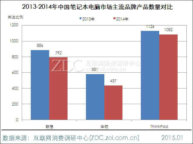 2014年笔记本电脑在售产品数量减少939款