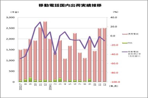 2014年12月移動電話国内出荷実績(JEITA/CIAJ)