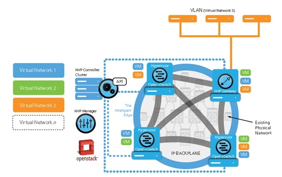 从商业上看,其最大的优势是不需要底层硬件支持OpenFlow,这样不管硬件厂商如何抵触也无法阻止网络虚拟化的脚步。