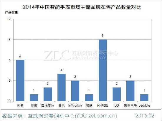 图5 2014年中国智能手表市场主流品牌在售产品数量对比
