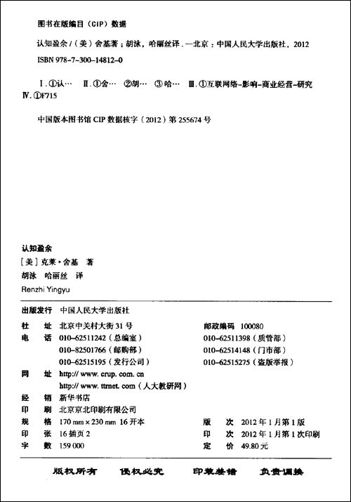 作者:(美国)克莱•舍基 (Clay Shirky) 译者:胡泳 哈丽丝