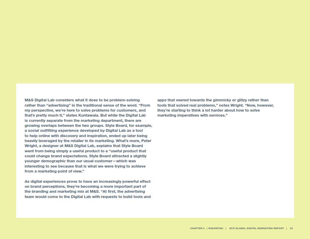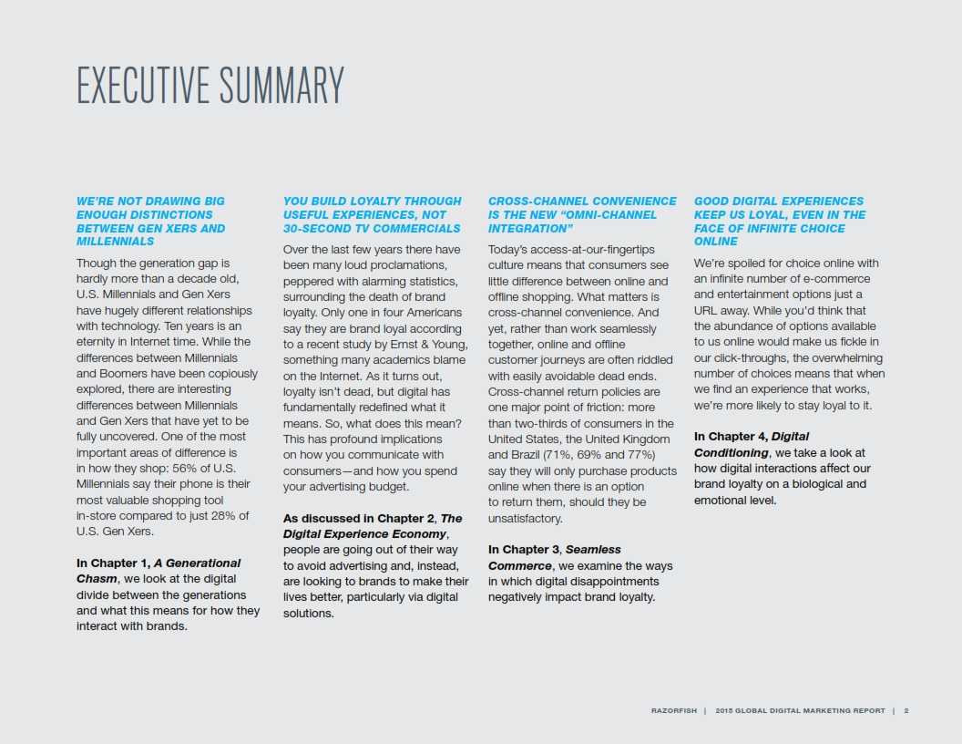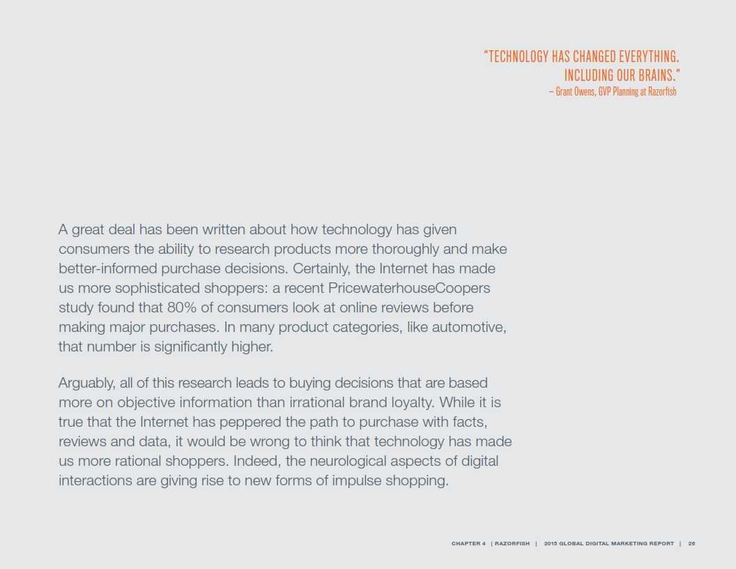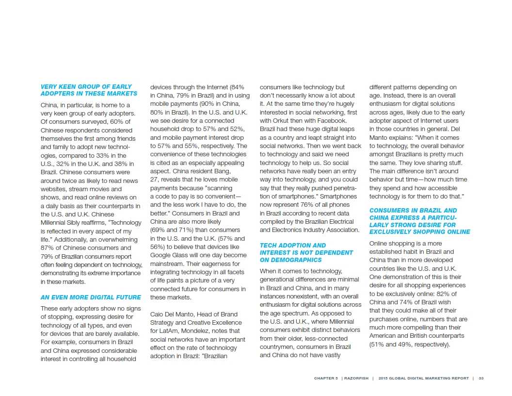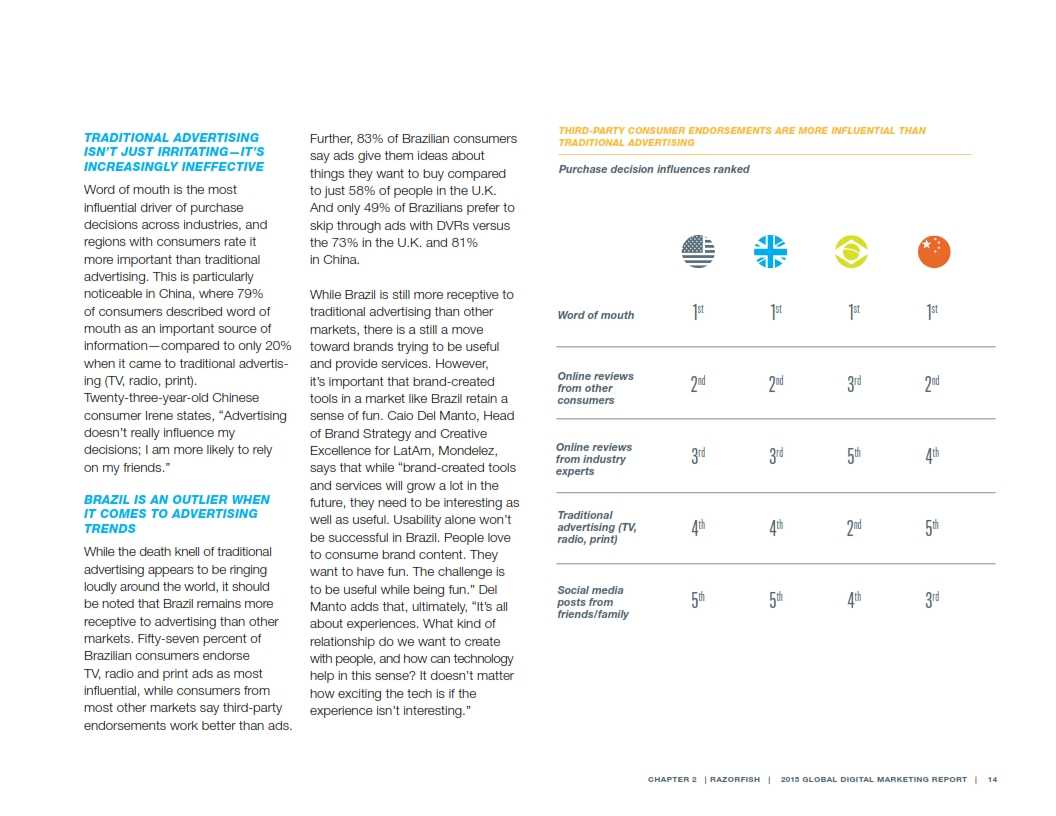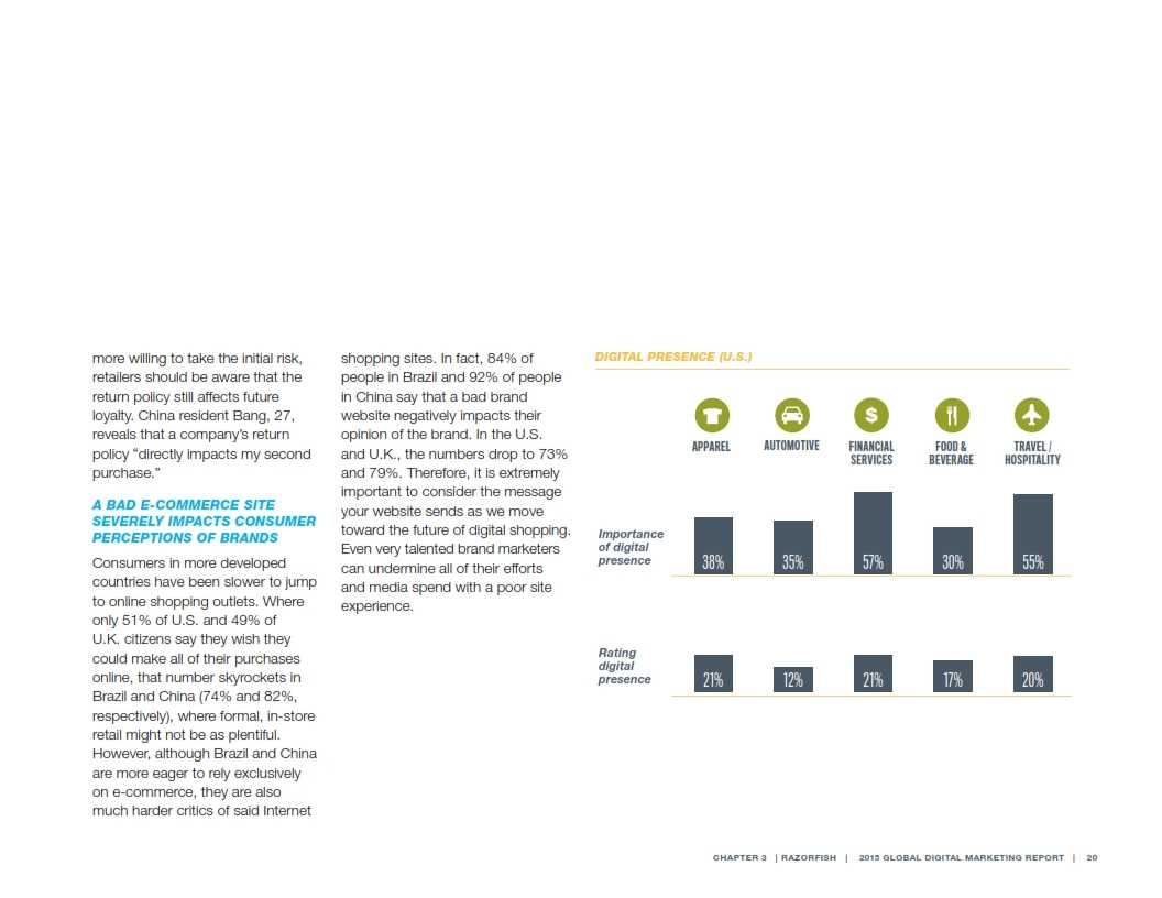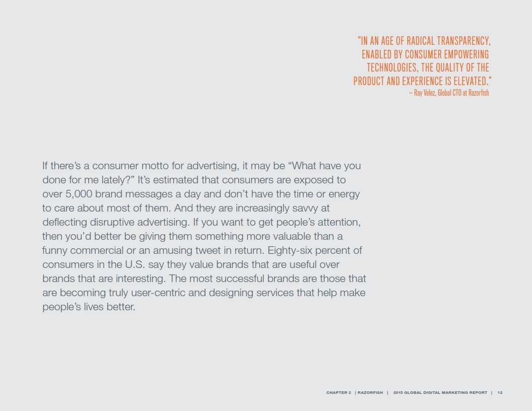 Razorfish:2015年全球数字营销报告 更多阅读:电通安吉斯:2018全球广告支出报告K-12报告:2017-2018全球数字学习现状IFPI:2019全球音乐市场报告世界经济论坛 :2018全球性别差距报告世界银行:2020年第6期全球经济展望报告IFPI:2012-2013年全球数据音乐报告世界经济论坛:2016年全球信息技术报告(附完整版306页下载)世界经济论坛:2017年全球人力资本报告(203页)世界旅游组织:2015年全球旅游报告(附完整版)世界经济论坛:2015年全球性别差距报告华为:2015年全球联接指数报告–每增加20%ICT投入 带动GDP增长1%国际唱片业协会:2015年全球数字音乐报告国际货币基金组织:2020年4月全球金融稳定报告埃森哲:2018全球技术展望报告尼尔森:2014年全球出版市场报告