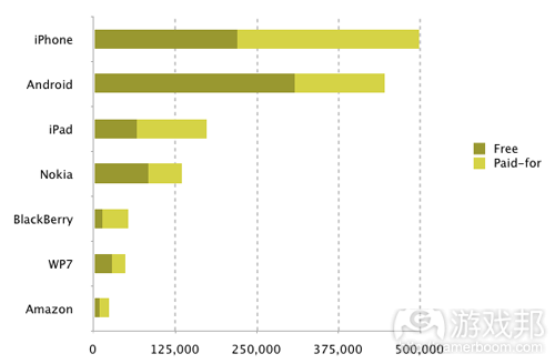 3)手机游戏公司TinyCo(其游戏在iOS和Android平台前25名营收榜单中均占据一定席位)日前表示,旗下模拟游戏《Tiny Village》在亚马逊Appstore每用户盈利性比iTunes用户高80%,亚马逊Kindle Fire用户盈利性也比iPad用户高43%,由此来看,亚马逊Appstore盈利性优于苹果App Store。
