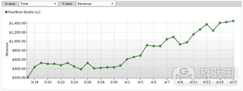 这款免费游戏原先通过AdDuplex等交叉推广网络及微软pubCenter平台的广告服务进行盈利,后来依托日常广告印象实现创收。得益于诺基亚Lumia系列产品的发售,FourBros目前平均每天可通过100万次广告印象创收1000美元。