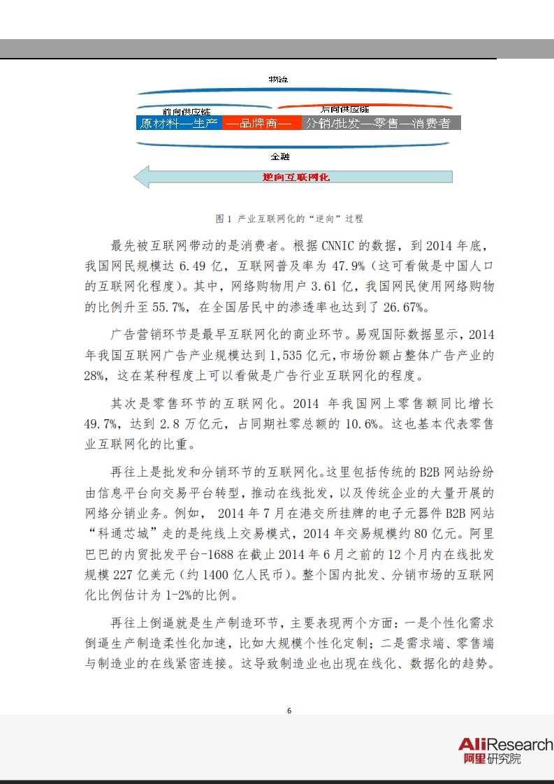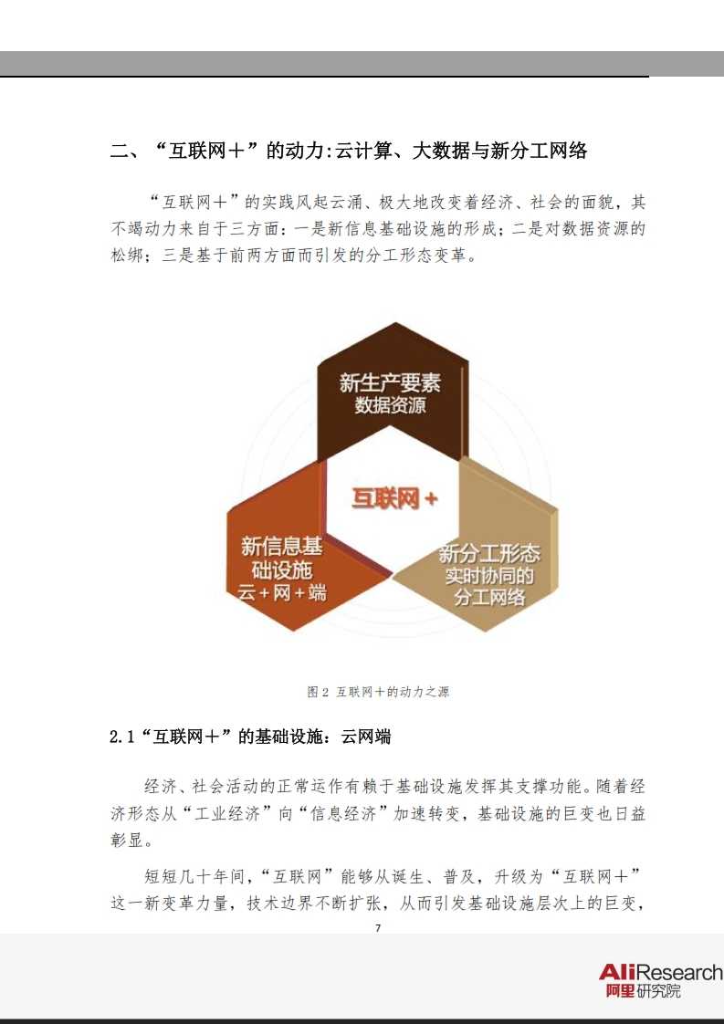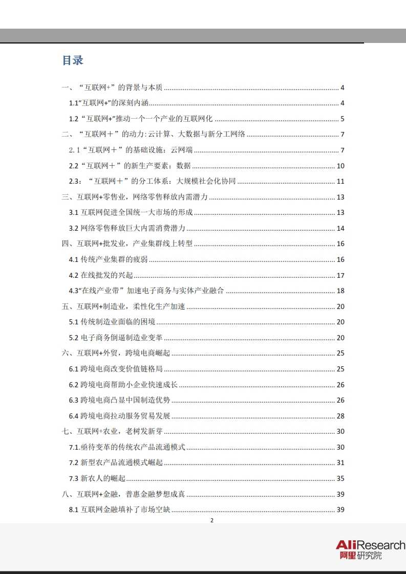 阿里研究院:2015年3月互联网+研究报告 更多阅读:阿里研究院:2015年”互联网+产业集群”研究报告阿里研究院:“互联网+制造业”“互联网+外贸”阿里研究院:2015年网商发展研究报告阿里研究院:浙江淘宝村研究报告企鹅智库:九大传统行业在线经济转型报告–互联网+红利时代透视“消费中国”——“互联网+”下的观察新维度Adobe:2022年亚太地区网络趋势报告GSMA:2022年互联网价值链报告搜狗输入法:2025年上半年“闪光青蛙”表情包最受关注APNIC:亚洲IPv6覆盖率达50% 用户数量领先全球AI产品榜:2025年2月中国AI应用夸克MAU破亿 领先字节豆包等竞品Morketing Research:2024年底腾讯以4950亿美元市值领跑中国互联网企业 小米年增长122%欧盟统计局:2023年49%的欧盟年轻网民遇到过敌意或侮辱性信息这场备受瞩目的CSR论坛,如何解读互联网行业社会创新?工信部:2024年1-2月份互联网和相关服务业运行情况