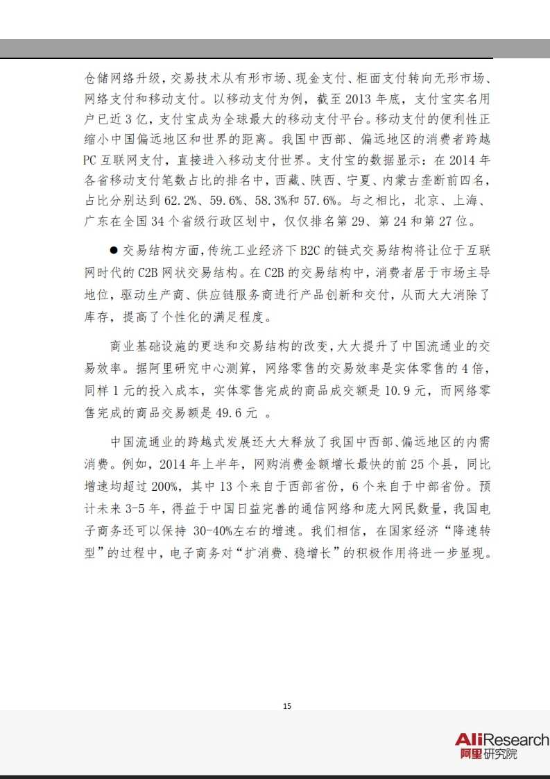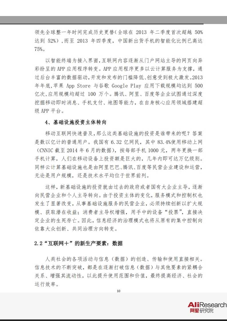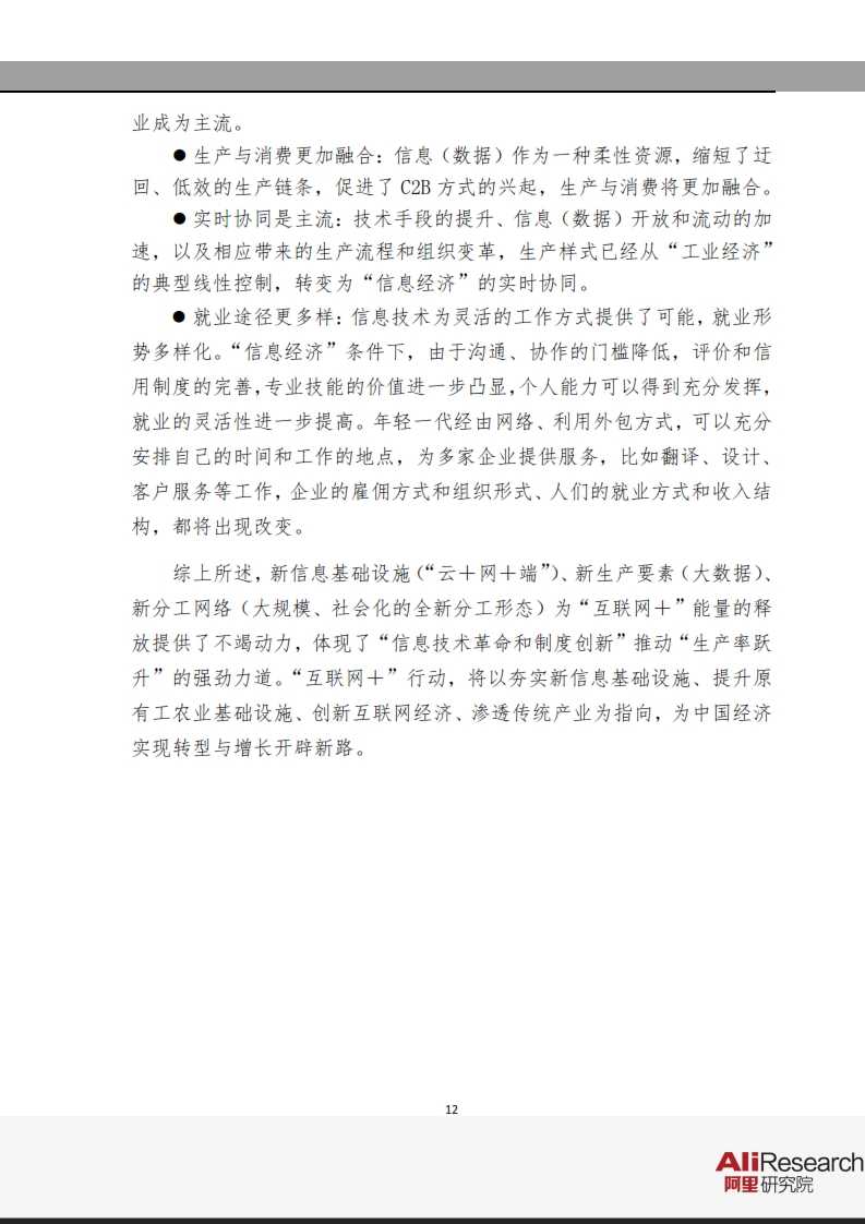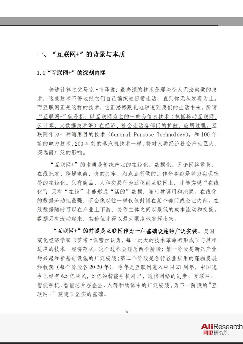 阿里研究院:2015年3月互联网+研究报告 更多阅读:阿里研究院:2015年”互联网+产业集群”研究报告阿里研究院:“互联网+制造业”“互联网+外贸”阿里研究院:2015年网商发展研究报告阿里研究院:浙江淘宝村研究报告企鹅智库:九大传统行业在线经济转型报告–互联网+红利时代透视“消费中国”——“互联网+”下的观察新维度Adobe:2022年亚太地区网络趋势报告GSMA:2022年互联网价值链报告搜狗输入法:2025年上半年“闪光青蛙”表情包最受关注APNIC:亚洲IPv6覆盖率达50% 用户数量领先全球AI产品榜:2025年2月中国AI应用夸克MAU破亿 领先字节豆包等竞品Morketing Research:2024年底腾讯以4950亿美元市值领跑中国互联网企业 小米年增长122%欧盟统计局:2023年49%的欧盟年轻网民遇到过敌意或侮辱性信息这场备受瞩目的CSR论坛,如何解读互联网行业社会创新?工信部:2024年1-2月份互联网和相关服务业运行情况