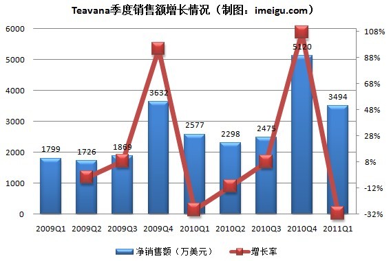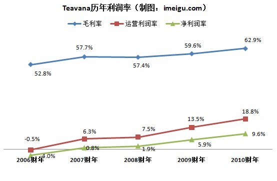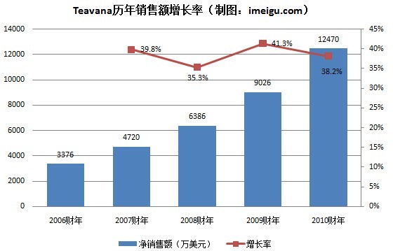 2007年Teavana建立在线销售平台//www.teavana.com/,2010财年在线平台为该公司贡献了7%的销售额,2007年至2010年年复合增长率为56%。
