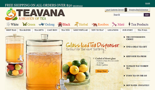 在购物体验方面,在线销售平台复制了零售店“茶天堂”的经营理念,推出虚拟“茶架”,用户可浏览Teavana提供所有茶叶、茶商品和茶礼品以及他们的介绍信息。